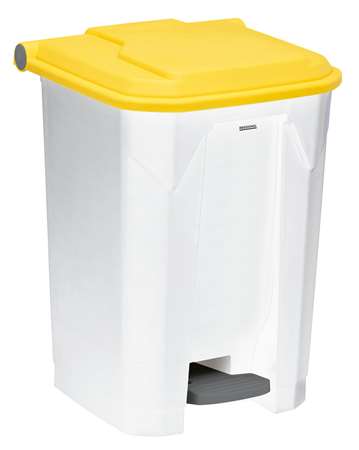 Poubelle à pédale 50 litres, polypropylène. Manipulation aisée grâce à sa large pédale et à sa poignée intégrée, tringlerie en plastique. Résistant et facile à entretenir. Méthode HACCP.