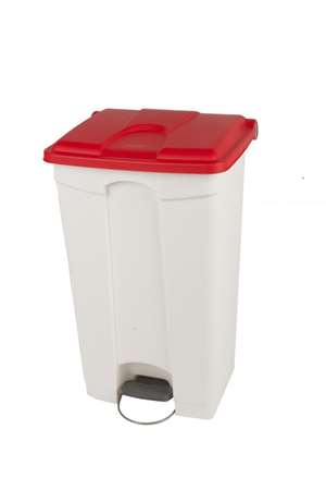 CONTAINER 90L blanc couvercle rouge à pédale avec un